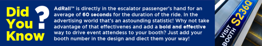 “As a preferred vendor at NAB Show, Ad Rail USA was an absolute pleasure to work with. From start to finish, the Ad Rail USA team was very reliable and clearly dedicated to the success of our show at the Las Vegas Convention Center. Our sponsors who were featured on the escalator handrails received a lot of attention and it was a great addition to our show!”